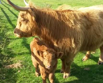 The Highland Cattle are a Native Breed who are slow to mature. Our cattle are naturally grown on. They have Somerset grass all Spring, Summer and hopefully Autumn, until our ground becomes too wet as we live on the Somerset Levels. They come in then to our big and airy barns to live on hay and haylage for the winter months.