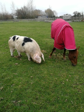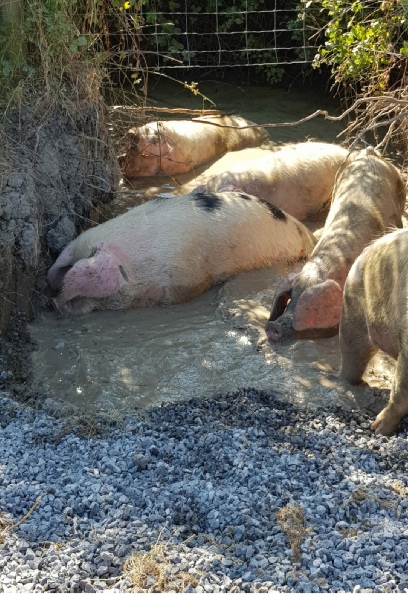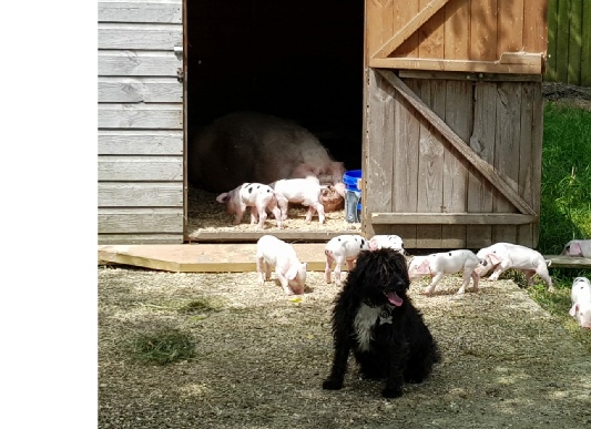 Our pigs for the good months of the year are free range, wandering around the fields with the Highland Cattle and horses. Through the bad months they are housed in concrete pens with beautiful straw beds. On the Somerset Levels the ground becomes very water logged, which the pigs are not happy with.